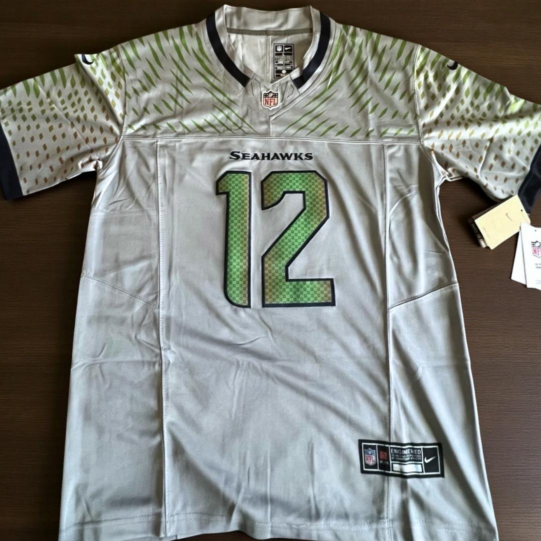 The shoulders are printed with the chameleon Seahawks wings, along with the chameleon number, and it is also integrated with “12th fan”.